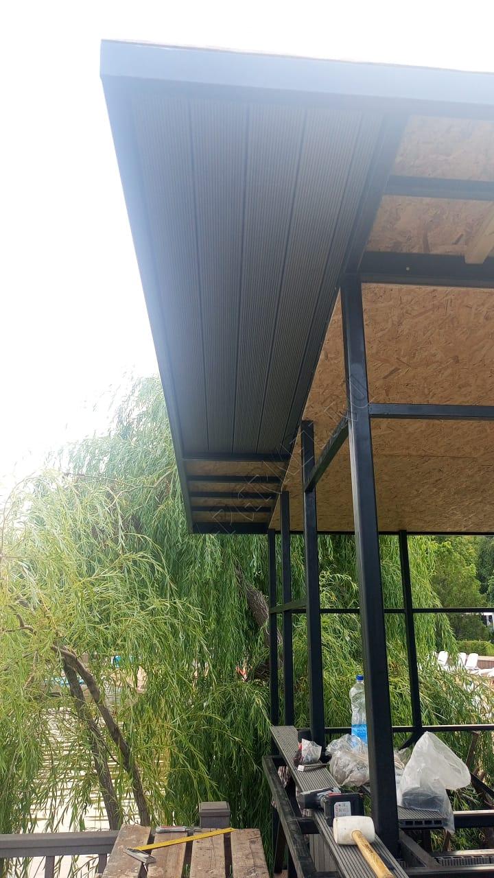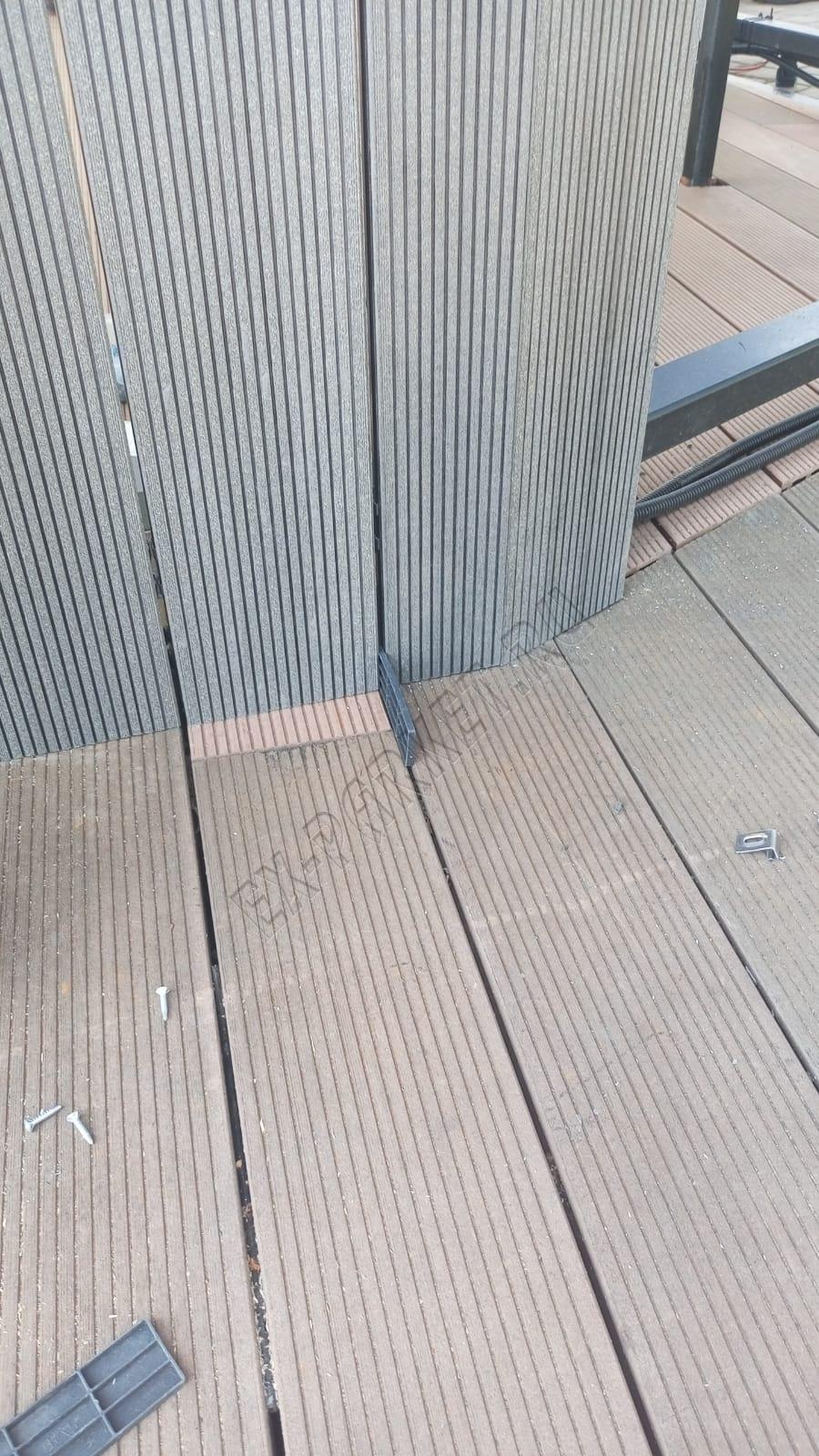 🔨 Монтаж произведён стороной вельвет на металлический каркас. Рабочая поверхность декинга не скользит и в дальнейшем легко поддаётся реставрации от царапин и выбоин.