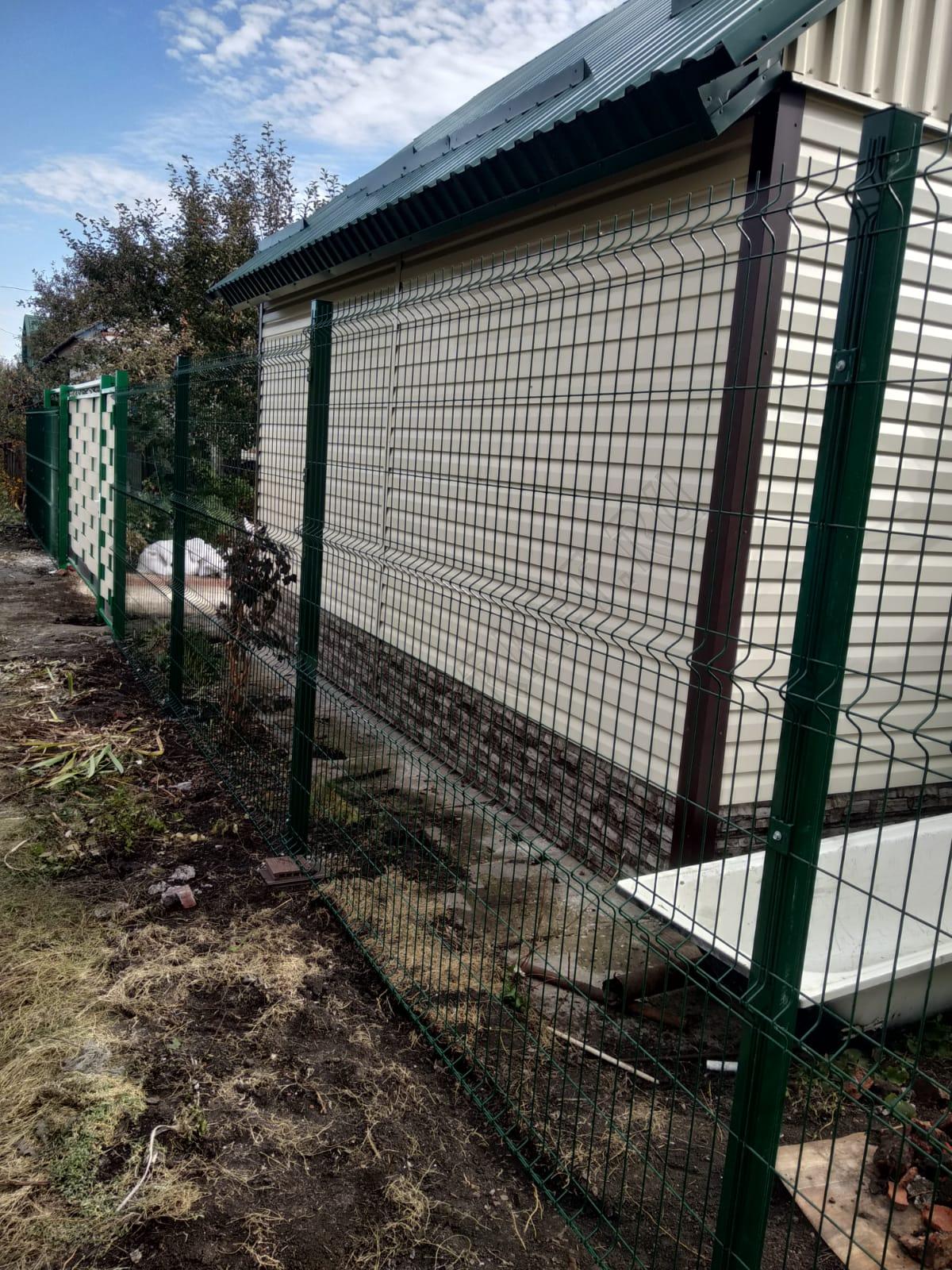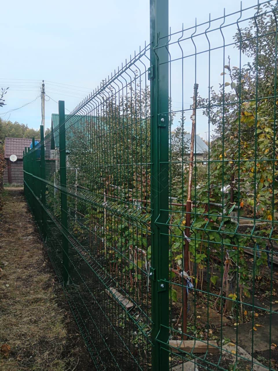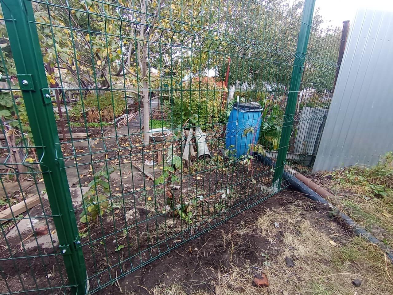 • Ограждение выполнено из прочной 3D сетки зелёного цвета, толщиной 4 мм и высотой 2,03 метра, обеспечивающей надёжную защиту вашей территории. 3D сетка обладает повышенной жёсткостью и устойчивостью к деформации.