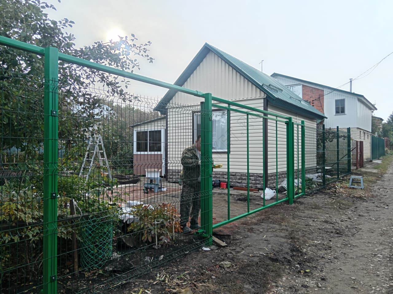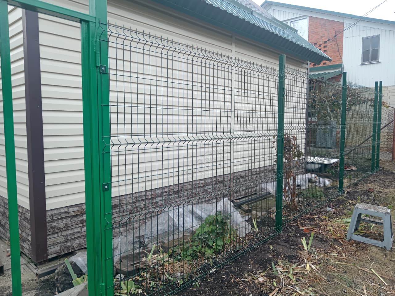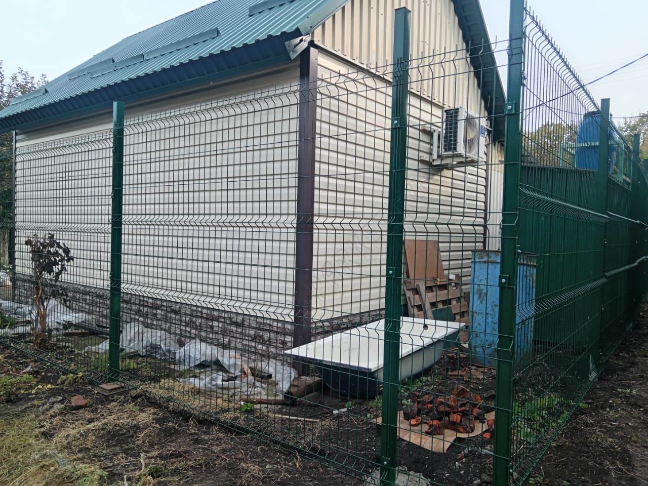 • Ограждение выполнено из прочной 3D сетки зелёного цвета, толщиной 4 мм и высотой 2,03 метра, обеспечивающей надёжную защиту вашей территории. 3D сетка обладает повышенной жёсткостью и устойчивостью к деформации.