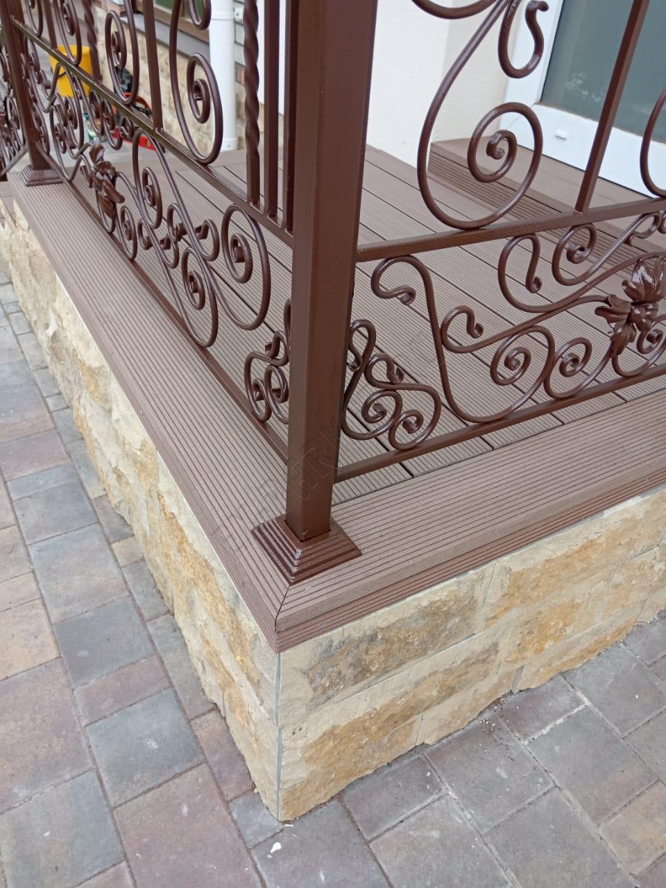 🔨 Для обрамления ступеней установлены ступени из ДПК Good Cover 22 мм, цвет коричневый, покрытие вельвет.