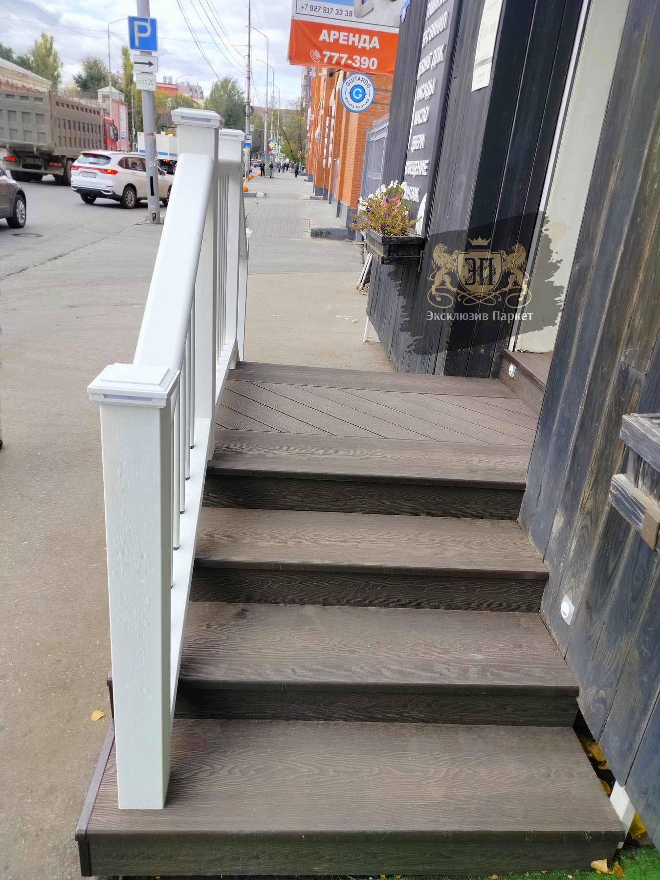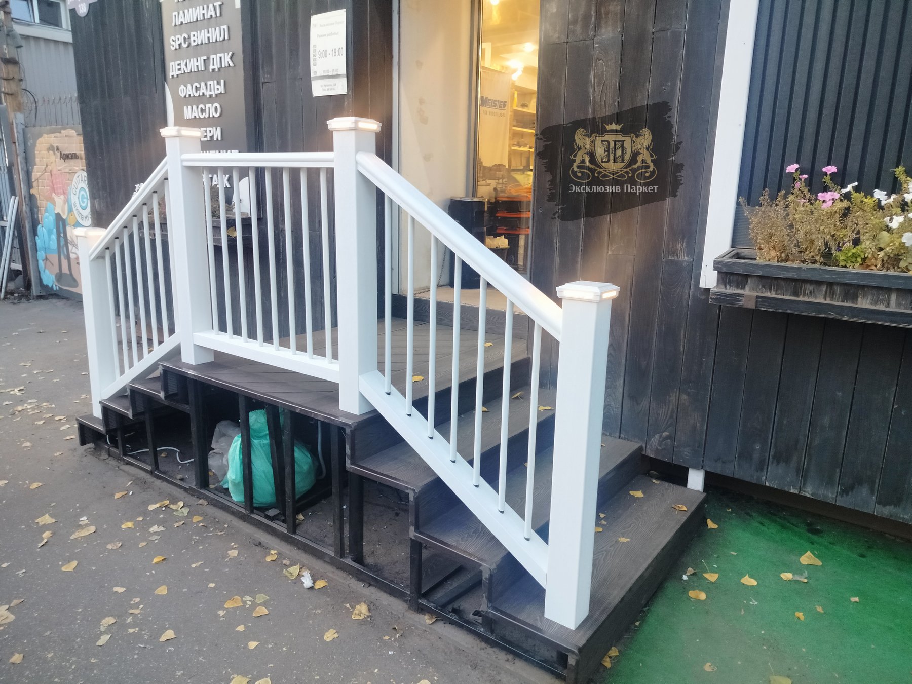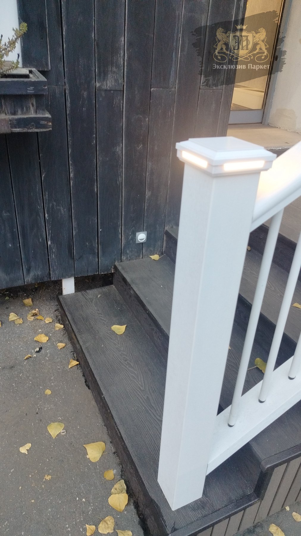 Новая лестница из ДПК Good Cover 3D и элегантными ограждениями Woodvex