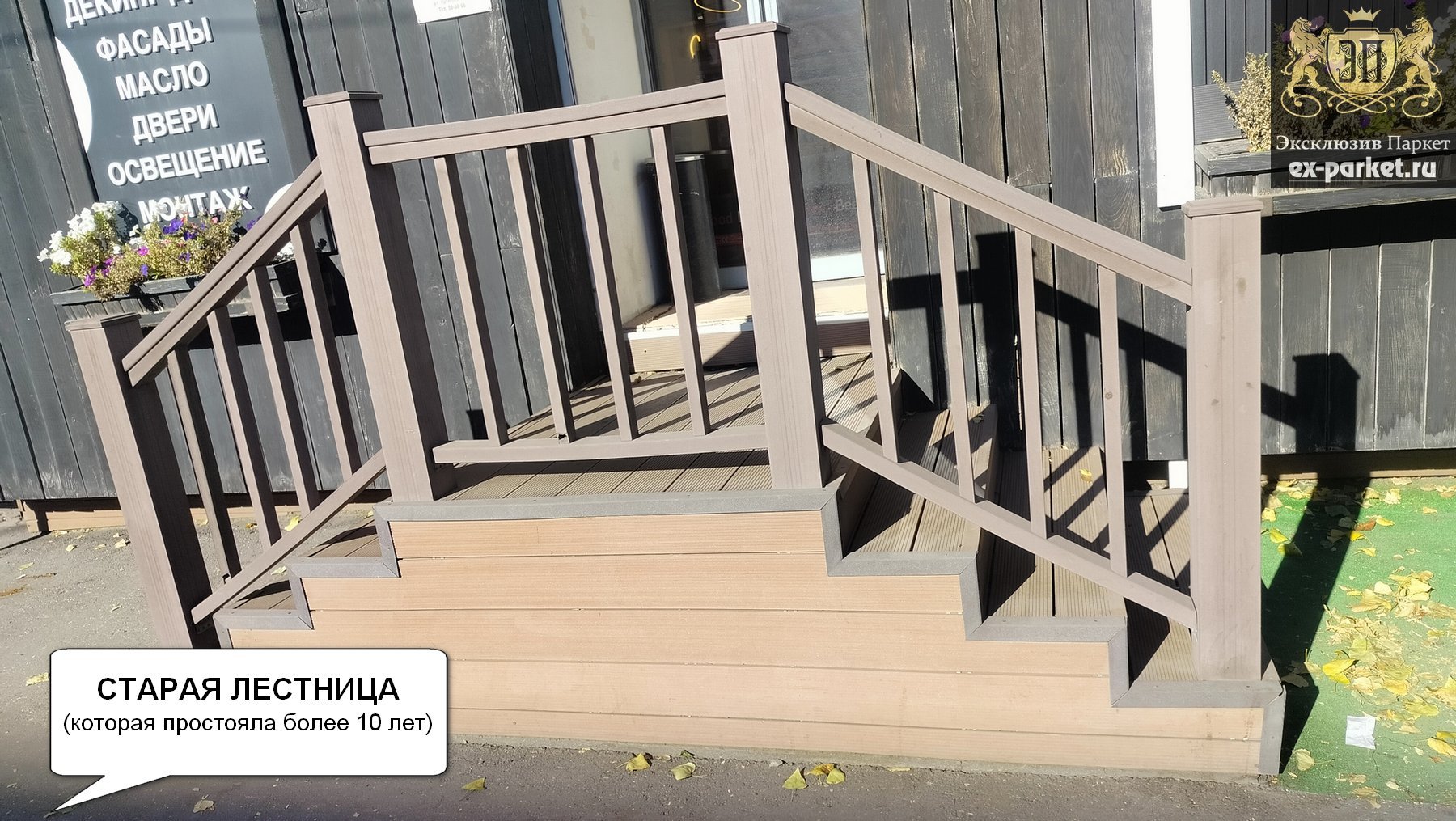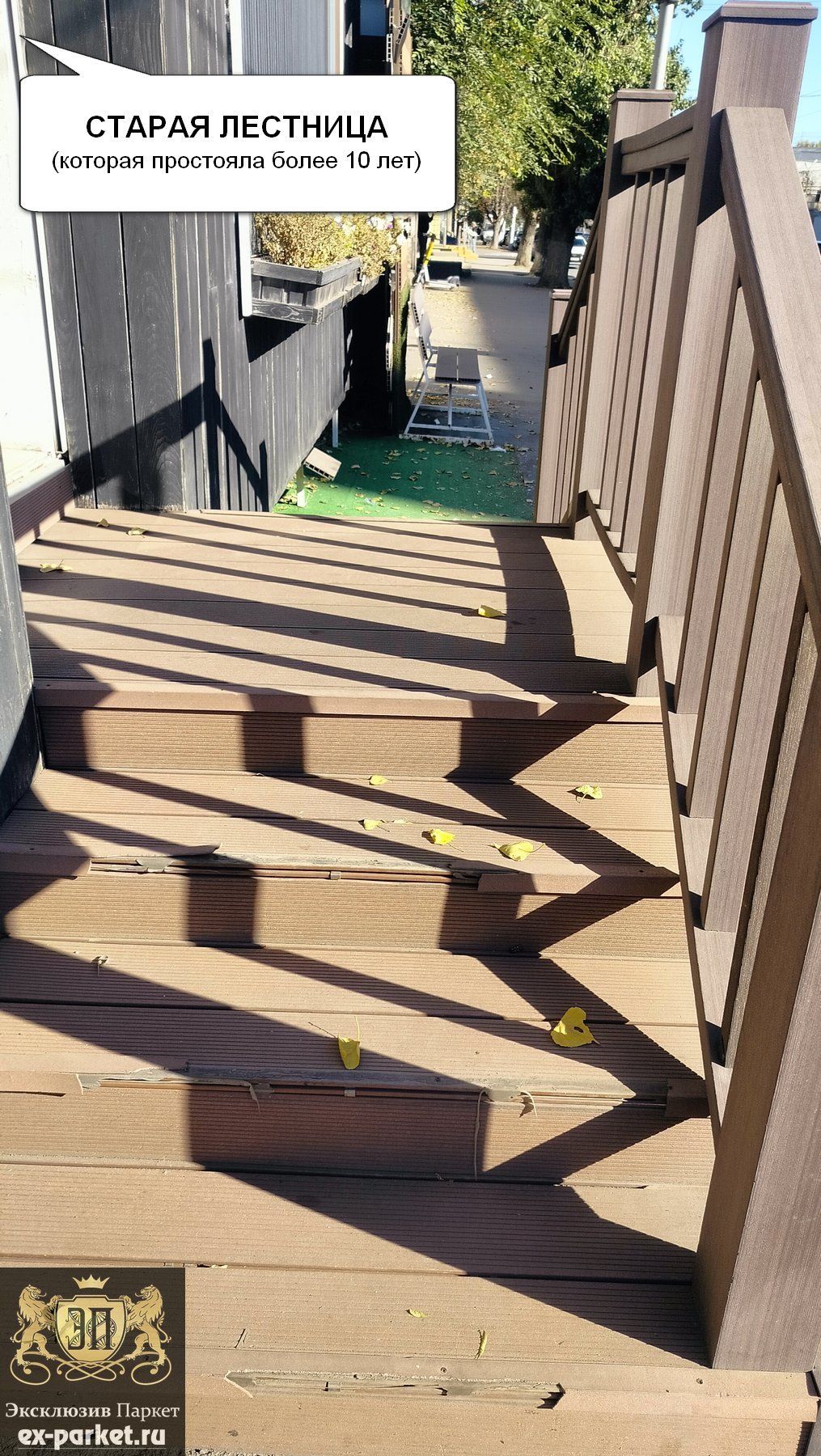 👋 Время не стоит на месте, и даже надёжные решения нуждаются в обновлении. Прошло десять лет, и мы демонтировали старую лестницу из стандартного профиля Good Cover (коричневый), чтобы заменить её на современную и стильную конструкцию из ДПК Good Cover 3D в глубоком цвете "венге".