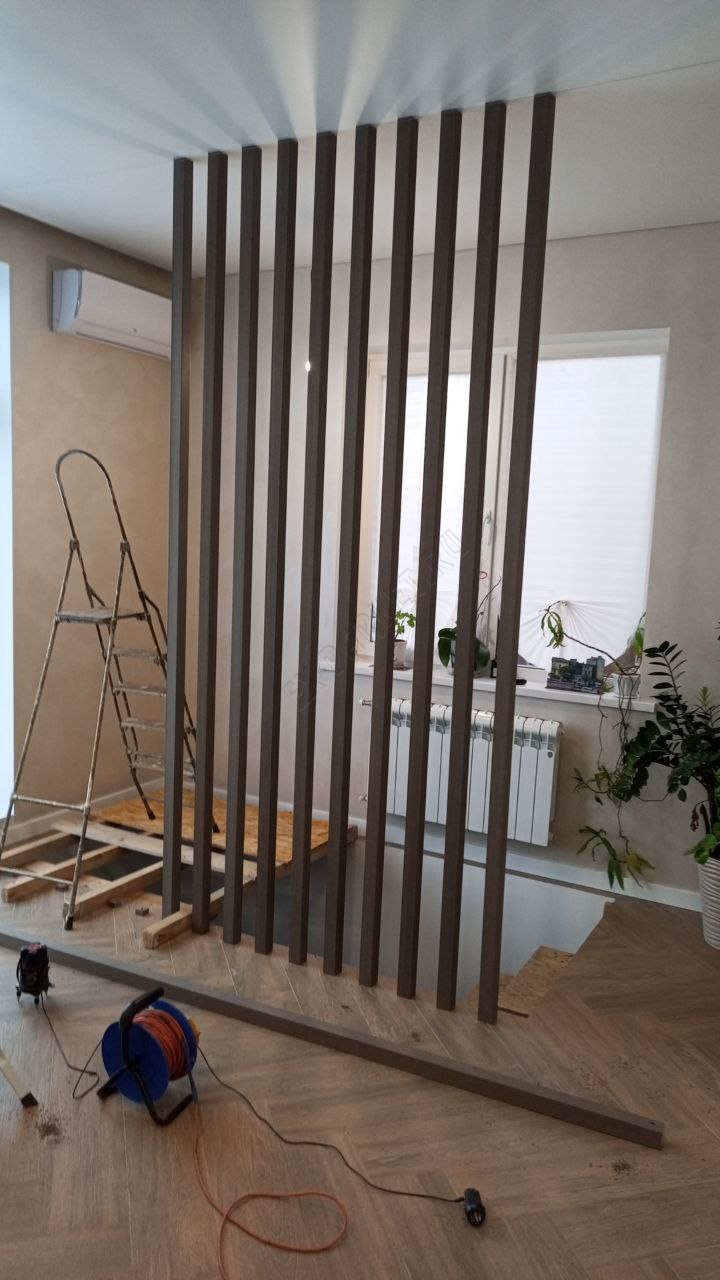 👋 Новый монтаж, создание стильной и функциональной перегородки из декоративных реек (баффелей) в уютном интерьере частного дома посёлка «Юбилейный».